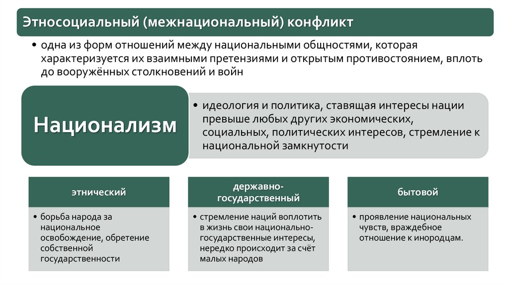 Этносоциальный (межнациональный) конфликт• одна из форм отношений между национальными общностями, которая