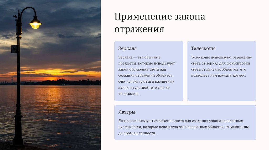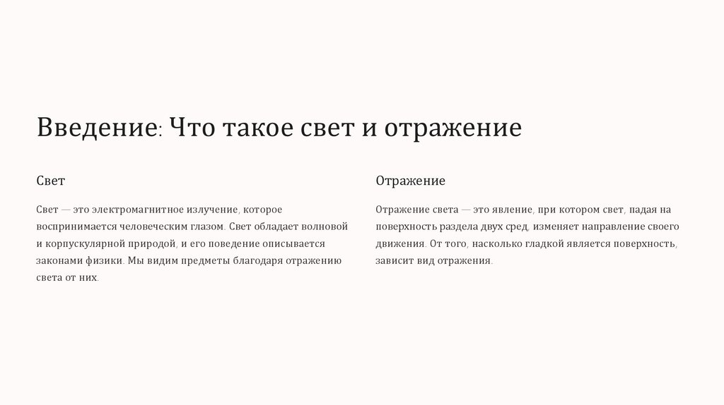 Мир вокруг нас полон света, а отражение света — это явление, которое
