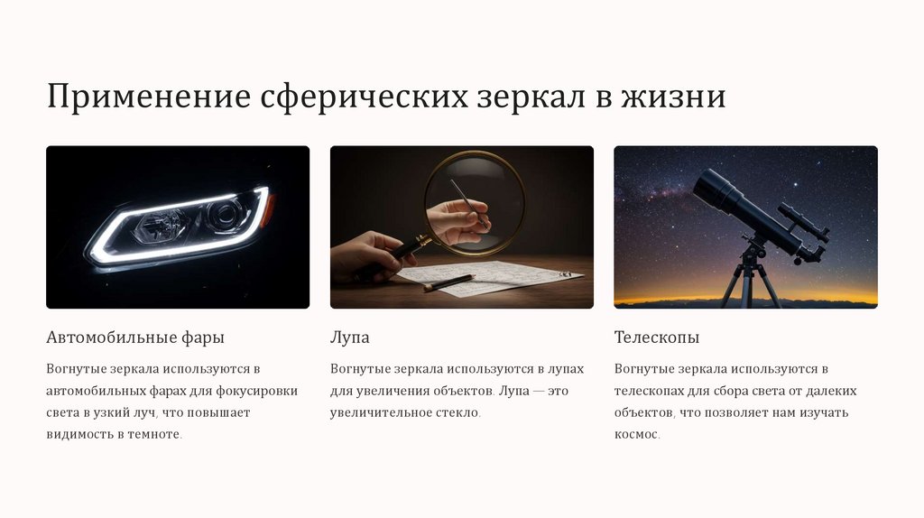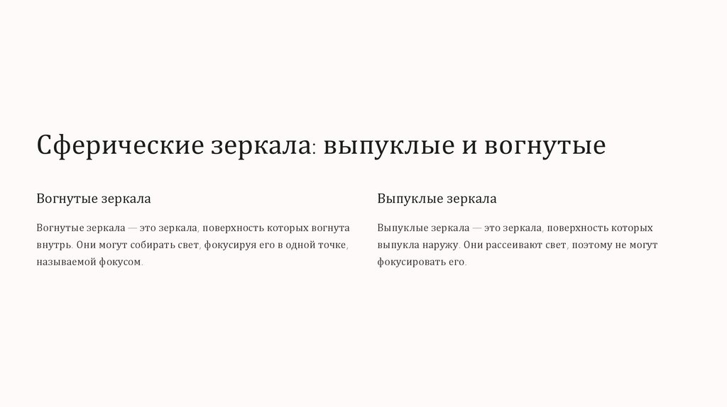 Сферические зеркала: выпуклые и вогнутыеВогнутые зеркала