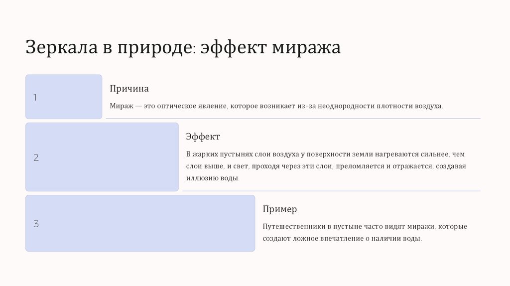 Мираж — это оптическое явление, которое возникает из-за неоднородности плотности воздуха.