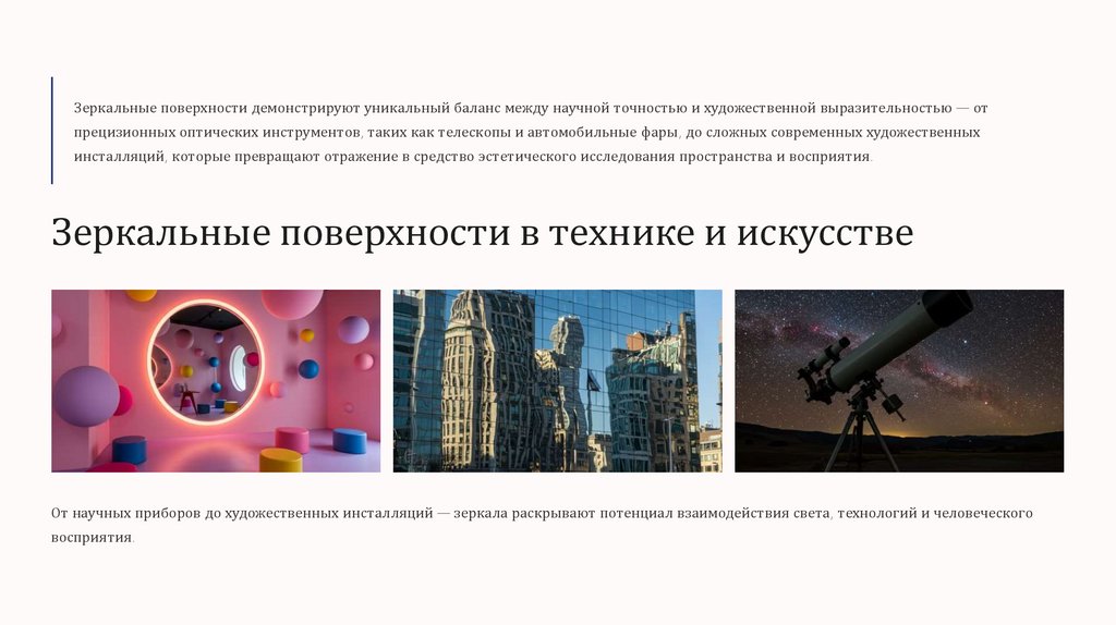 От научных приборов до художественных инсталляций — зеркала раскрывают потенциал взаимодействия света, технологий и человеческого