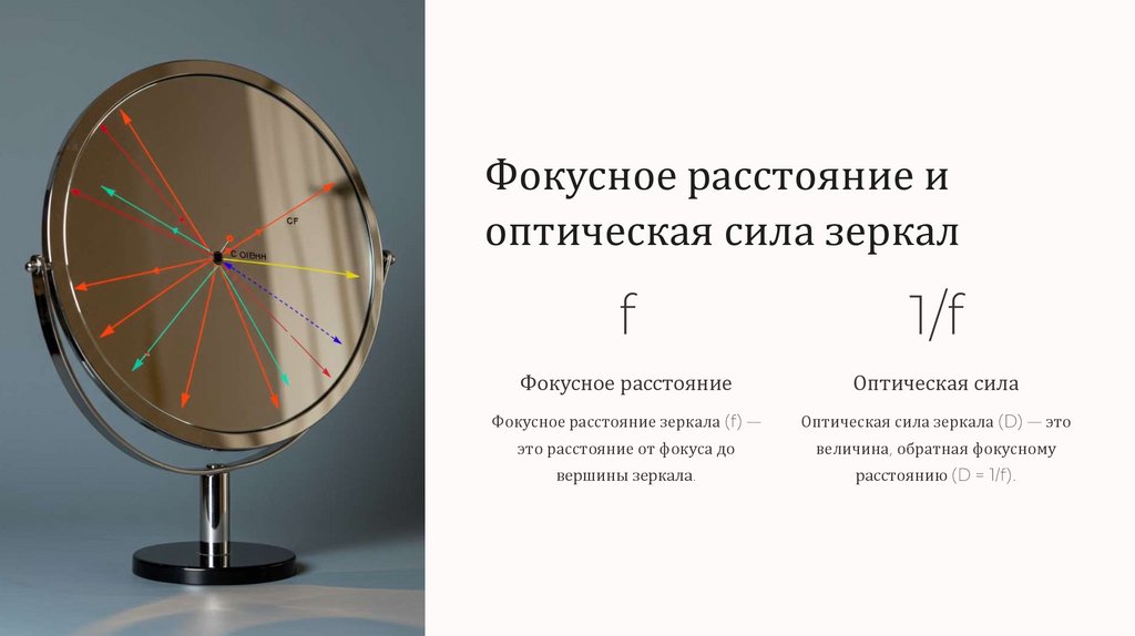 Расстояние от фокуса до вершины зеркала называется фокусным расстоянием.