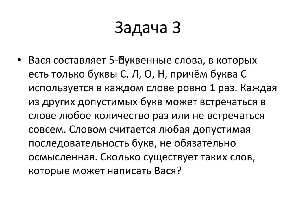 Задача 3• Вася составляет 5-