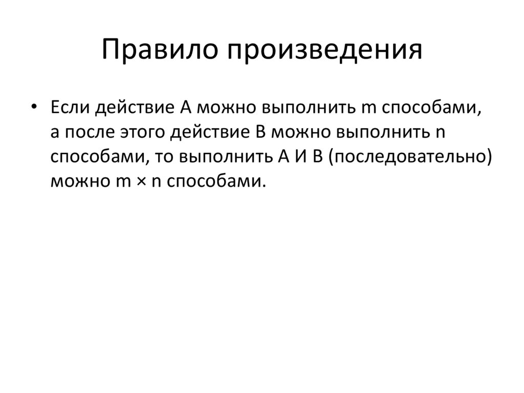 Правило произведения• Если действие A можно выполнить m способами,