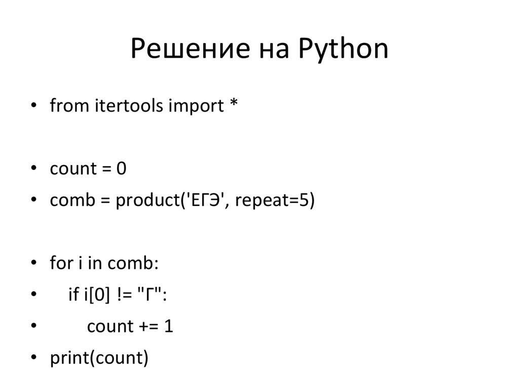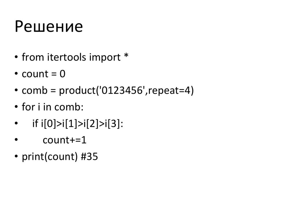 Решение на Python• from itertools import *