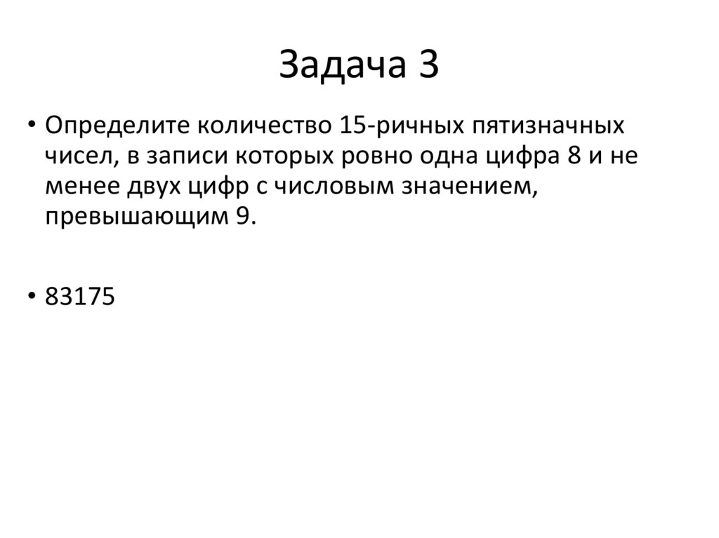 Задача 15• Определите количество пятизначных чисел,