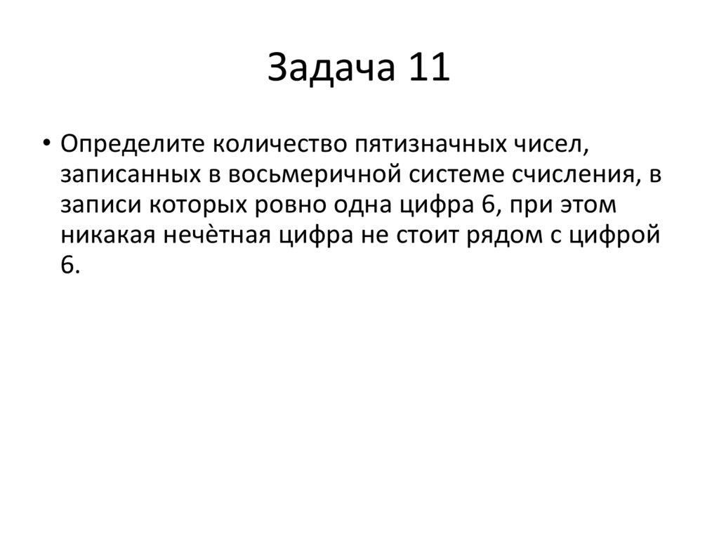 Задача 11• Определите количество пятизначных чисел,