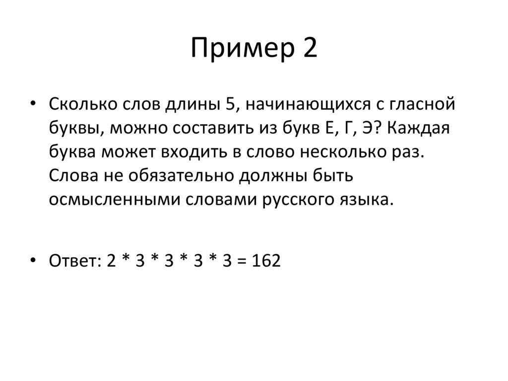 Пример 2• Сколько слов длины 5, начинающихся с гласной