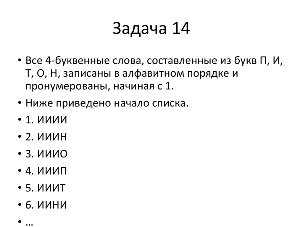 Задача 14• Все 4-буквенные слова, составленные из букв П, И,