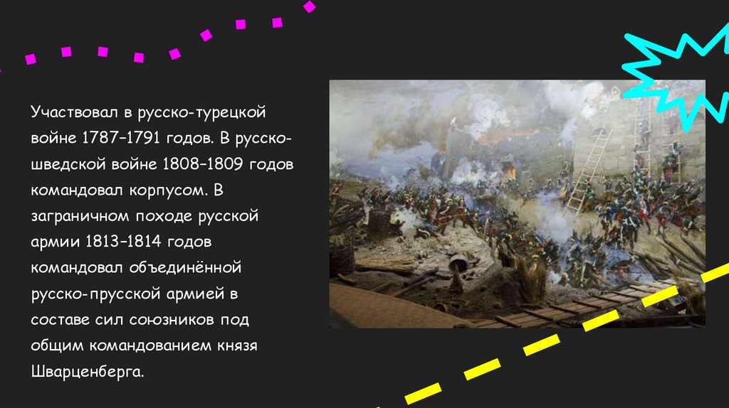 Участвовал в русско-турецкойвойне 1787–1791 годов. В русскошведской войне 1808–1809 годов