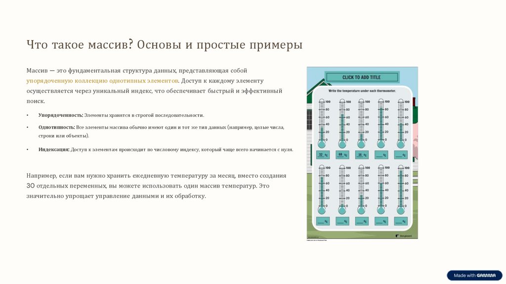 Что такое массив? Основы и простые примерыМассив — это фундаментальная структура данных, представляющая собой