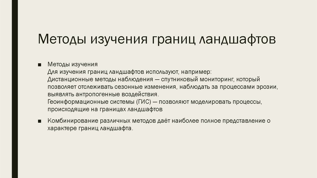 ■ Методы изученияДля изучения границ ландшафтов используют, например: