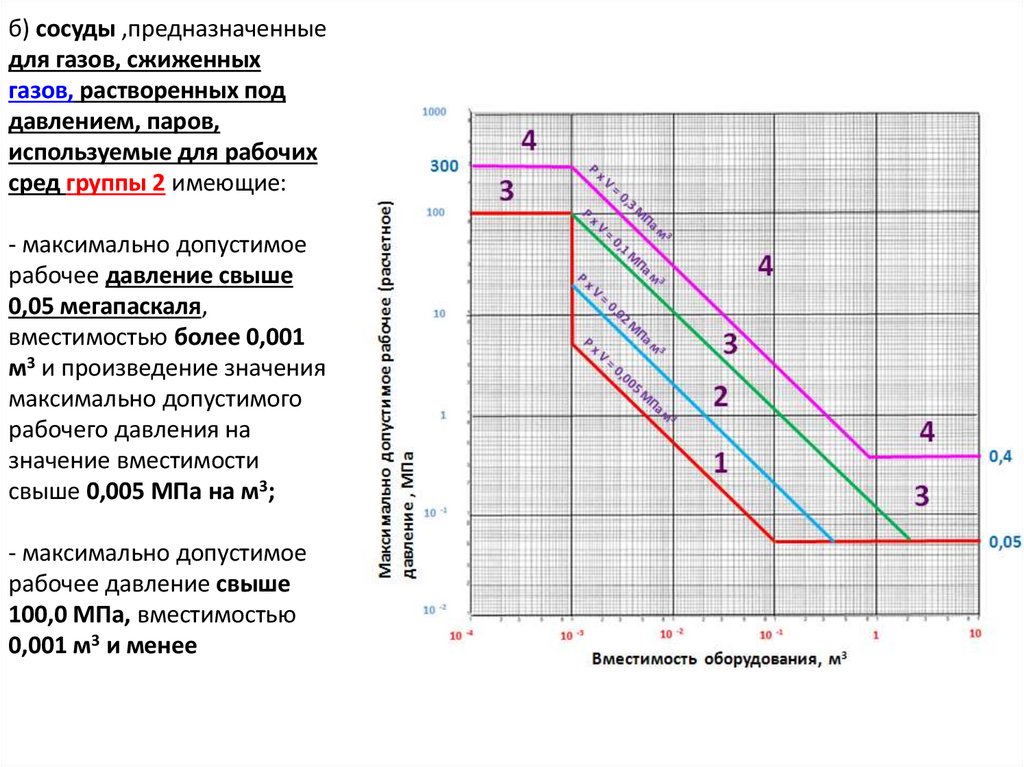 3. Категории сосудов, предназначенных для газов и используемых для рабочих сред 2 группы