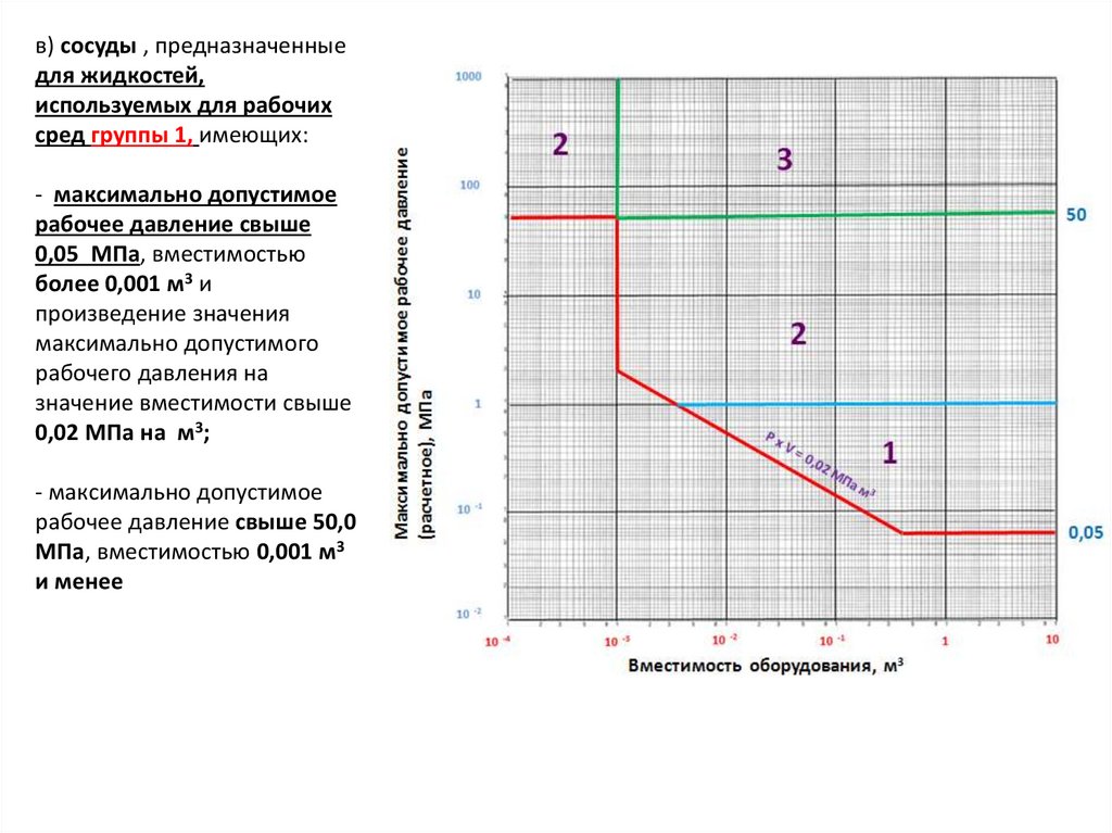 5. Категории сосудов, предназначенных для жидкостей и используемых для рабочих сред 1 группы