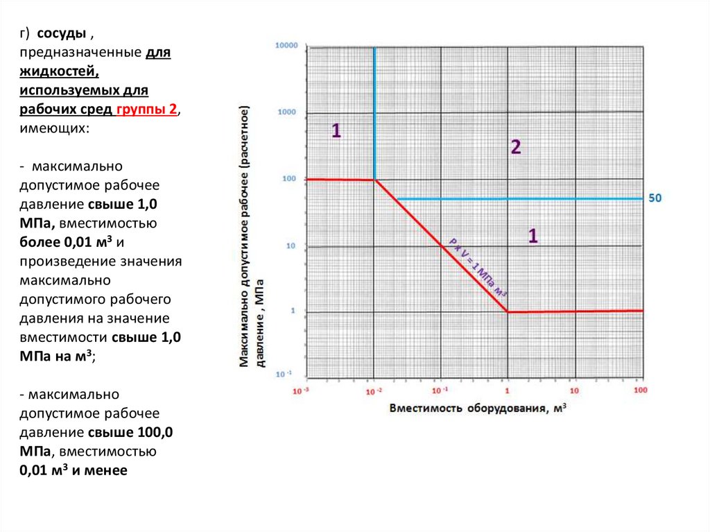 7. Категории сосудов, предназначенных для жидкостей и используемых для рабочих сред 2 группы