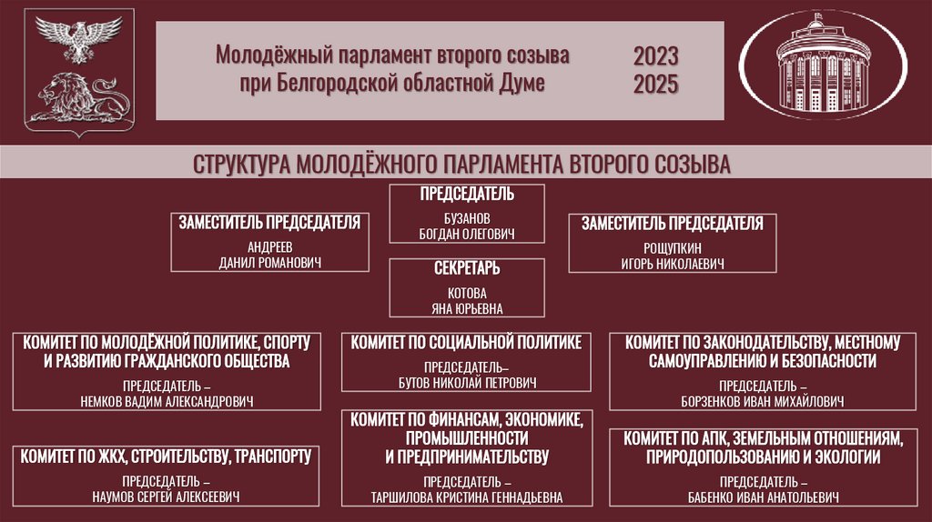 СТРУКТУРА МОЛОДЁЖНОГО ПАРЛАМЕНТА ВТОРОГО СОЗЫВА
