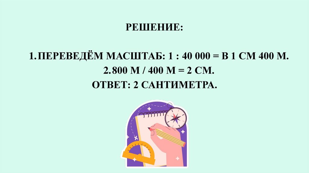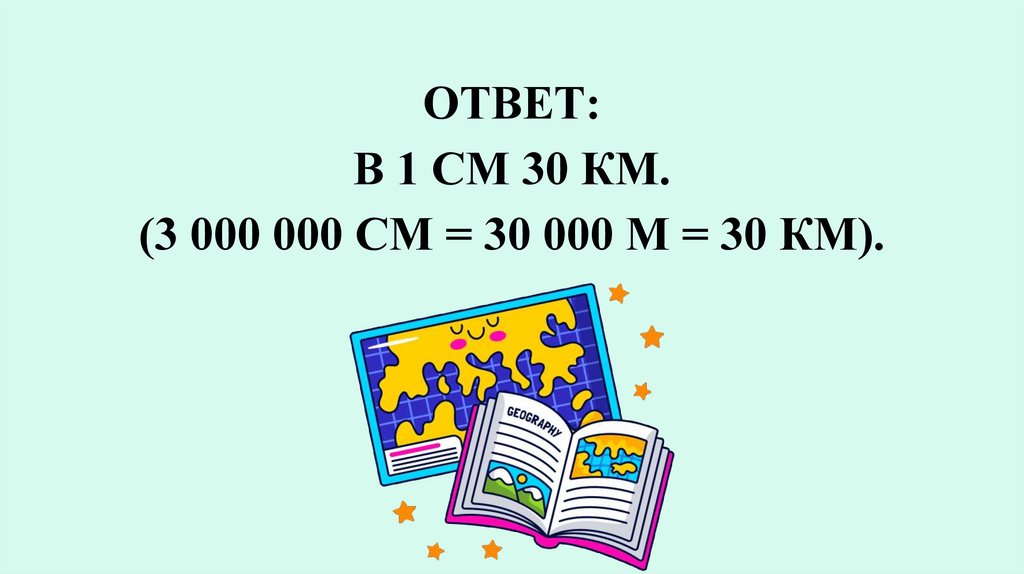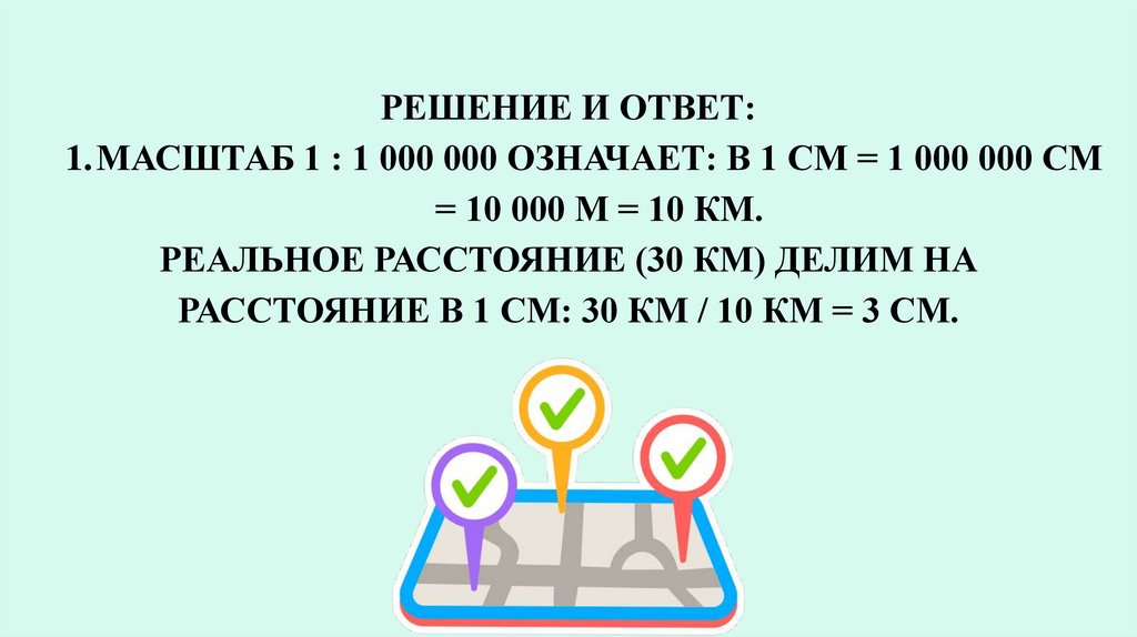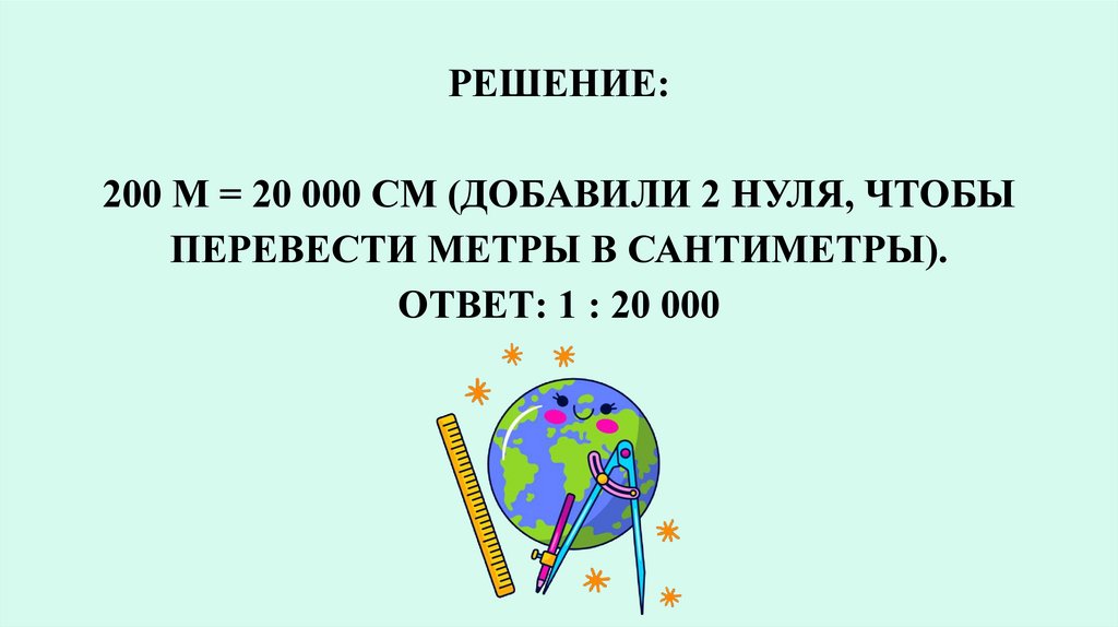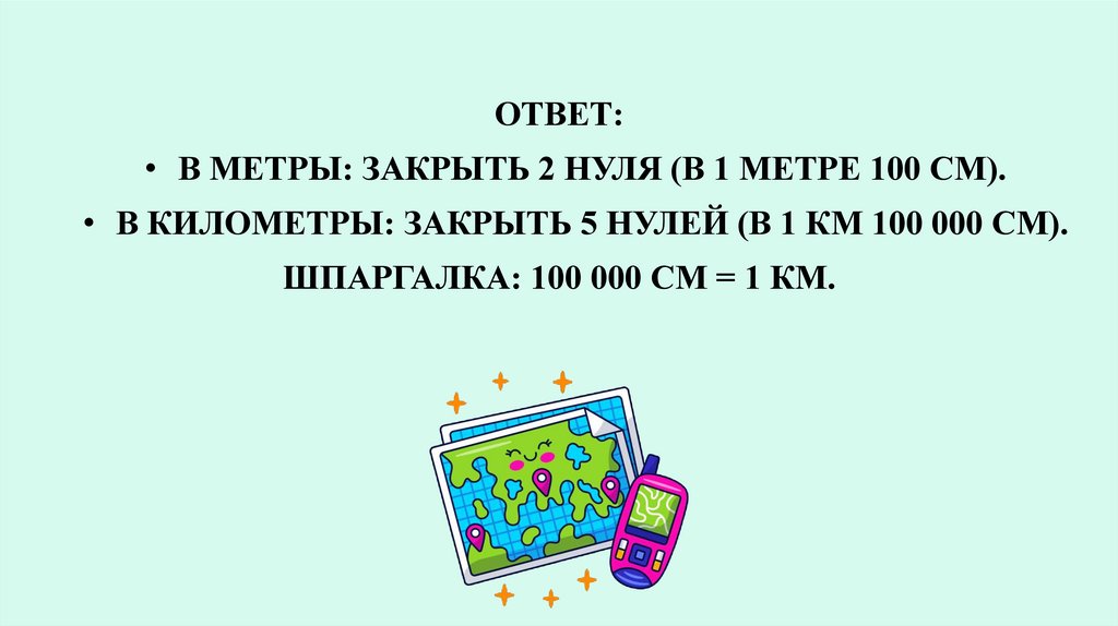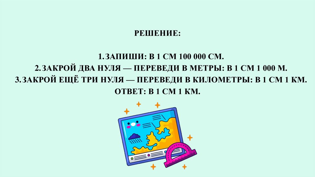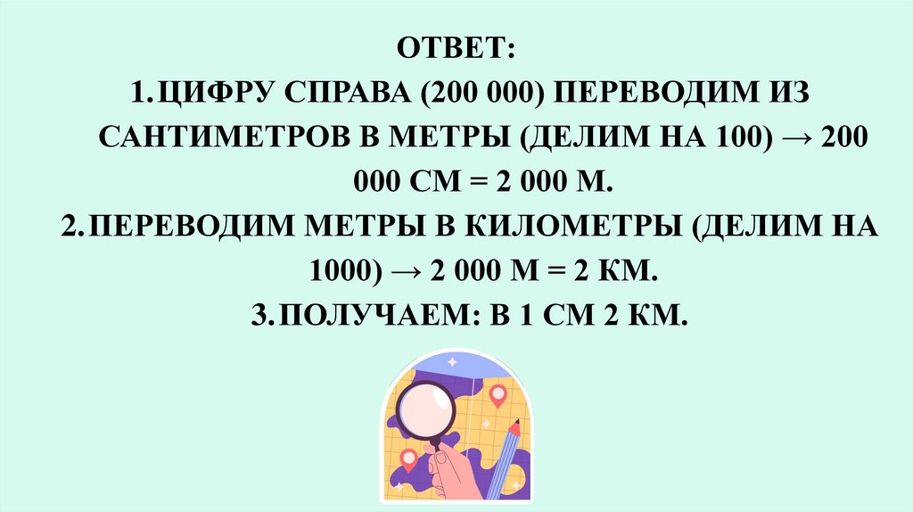 2.ЗАКРОЙ ДВА НУЛЯ — ПЕРЕВЕДИ В МЕТРЫ: В 1 СМ 1 000 М.