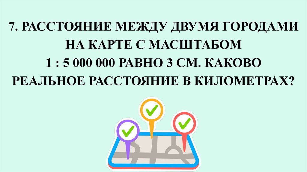 7. РАССТОЯНИЕ МЕЖДУ ДВУМЯ ГОРОДАМИНА КАРТЕ С МАСШТАБОМ