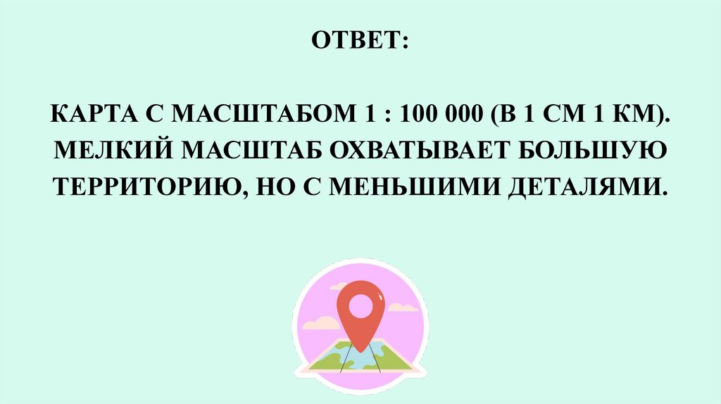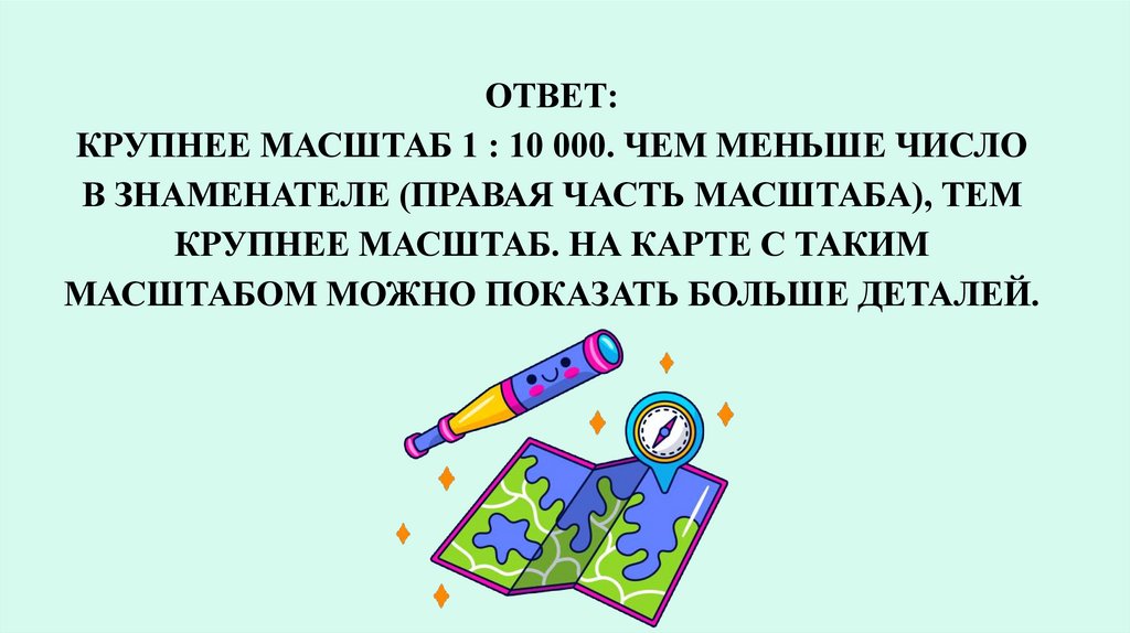ОТВЕТ:КРУПНЕЕ МАСШТАБ 1 : 10 000. ЧЕМ МЕНЬШЕ ЧИСЛО