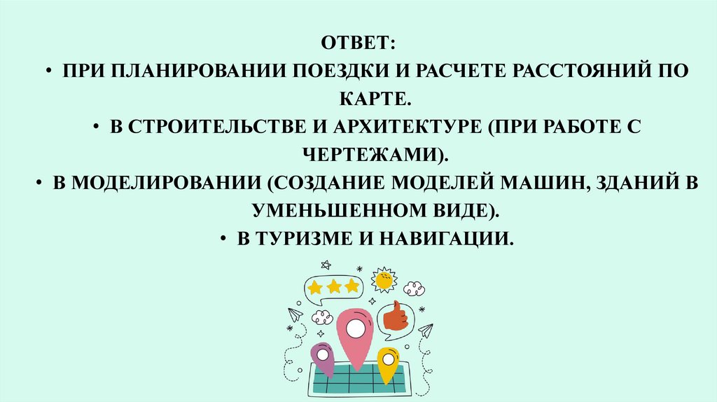 ОТВЕТ:• ПРИ ПЛАНИРОВАНИИ ПОЕЗДКИ И РАСЧЕТЕ РАССТОЯНИЙ ПО
