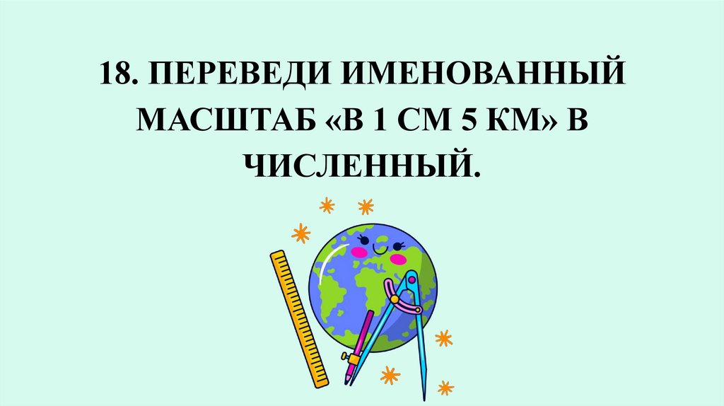 18. ПЕРЕВЕДИ ИМЕНОВАННЫЙМАСШТАБ «В 1 СМ 5 КМ» В