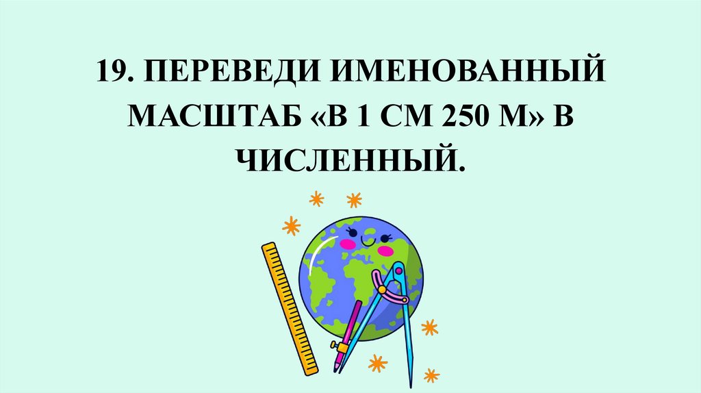 19. ПЕРЕВЕДИ ИМЕНОВАННЫЙМАСШТАБ «В 1 СМ 250 М» В