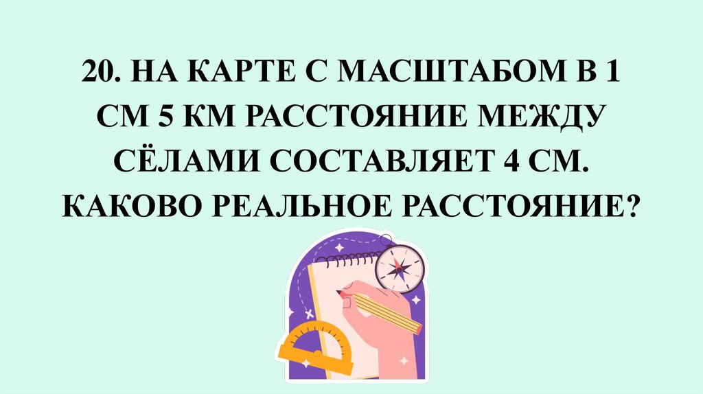 20. НА КАРТЕ С МАСШТАБОМ В 1СМ 5 КМ РАССТОЯНИЕ МЕЖДУ