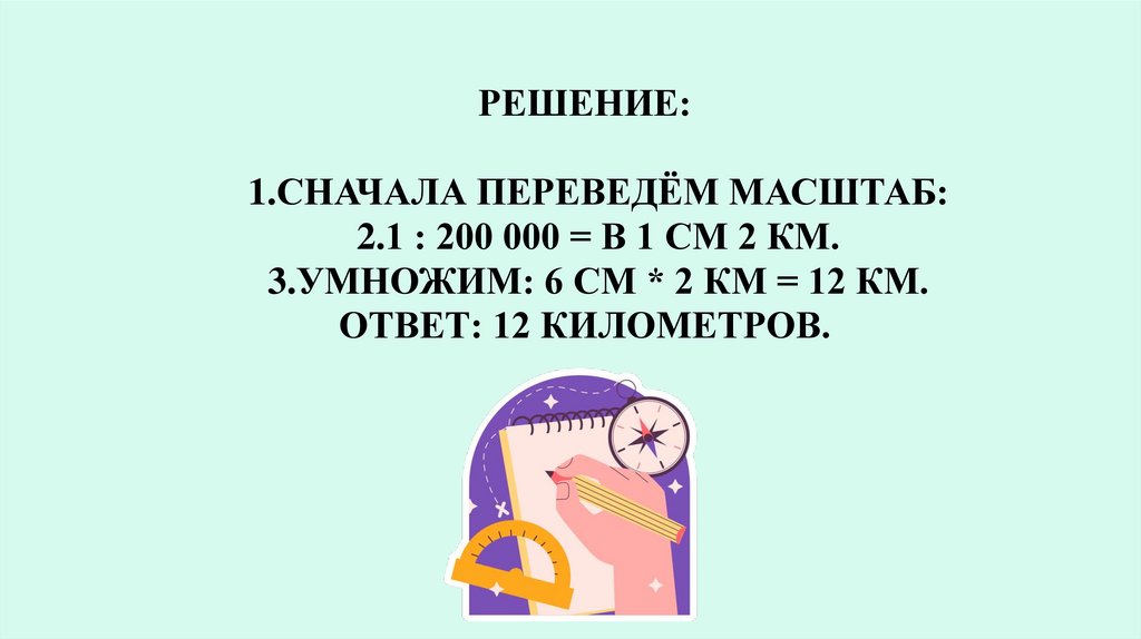 РЕШЕНИЕ:1.СНАЧАЛА ПЕРЕВЕДЁМ МАСШТАБ: