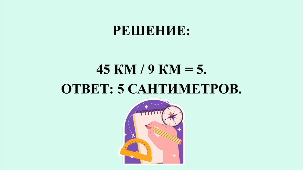 РЕШЕНИЕ:1. В 1 СМ — 5 КМ.