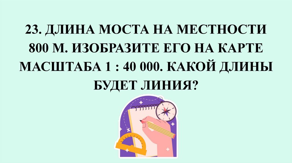 23. ДЛИНА МОСТА НА МЕСТНОСТИ800 М. ИЗОБРАЗИТЕ ЕГО НА КАРТЕ