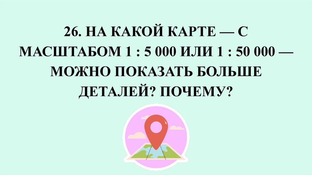 26. НА КАКОЙ КАРТЕ — СМАСШТАБОМ 1 : 5 000 ИЛИ 1 : 50 000 —