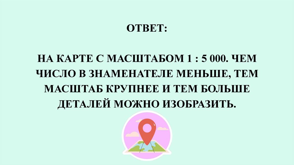 ОТВЕТ:НА КАРТЕ С МАСШТАБОМ 1 : 5 000. ЧЕМ