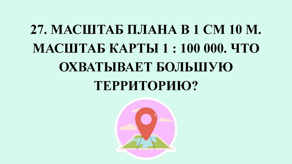 27. МАСШТАБ ПЛАНА В 1 СМ 10 М.МАСШТАБ КАРТЫ 1 : 100 000. ЧТО