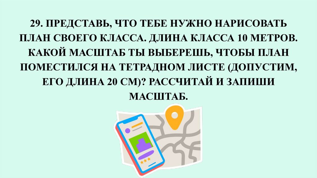 29. ПРЕДСТАВЬ, ЧТО ТЕБЕ НУЖНО НАРИСОВАТЬПЛАН СВОЕГО КЛАССА. ДЛИНА КЛАССА 10 МЕТРОВ.