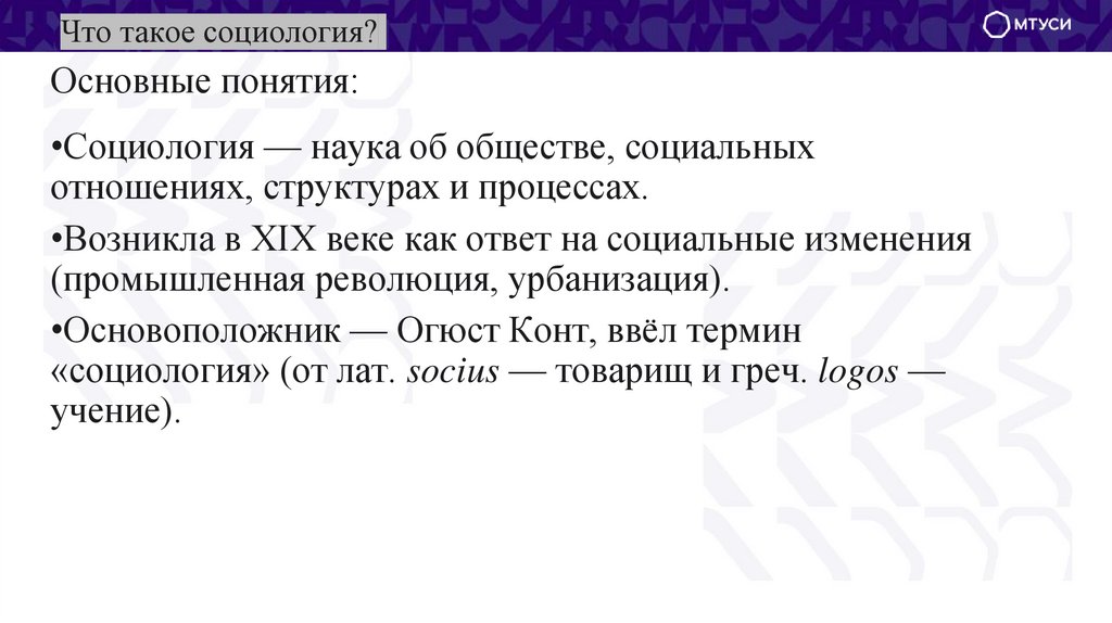 Что такое социология?Основные понятия: