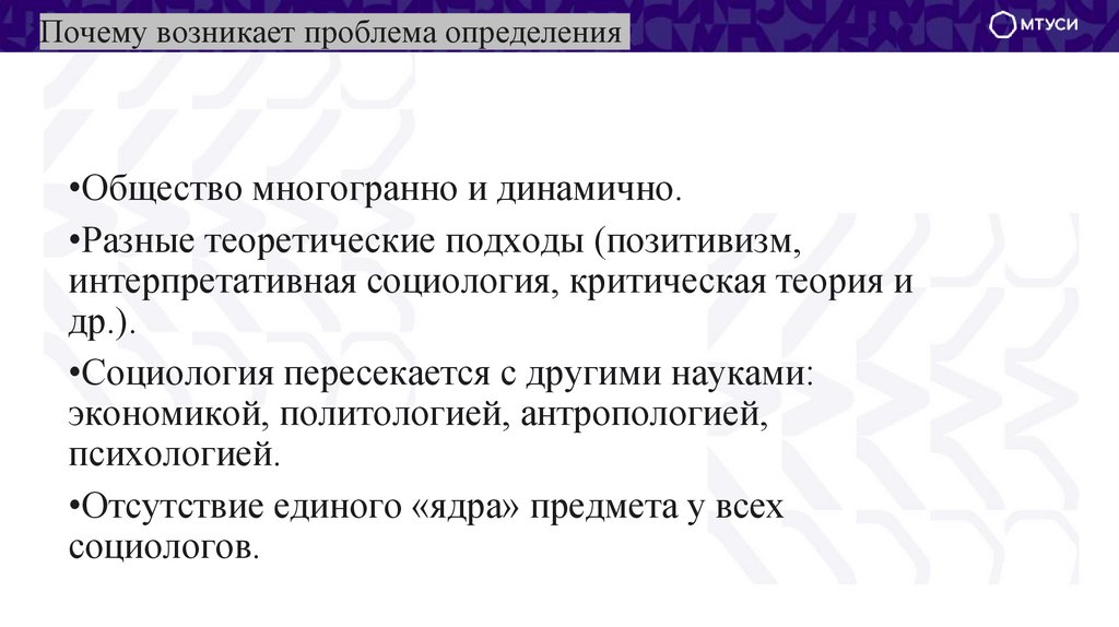 Почему возникает проблема определения•Общество многогранно и динамично.