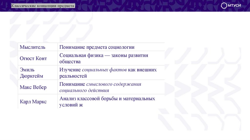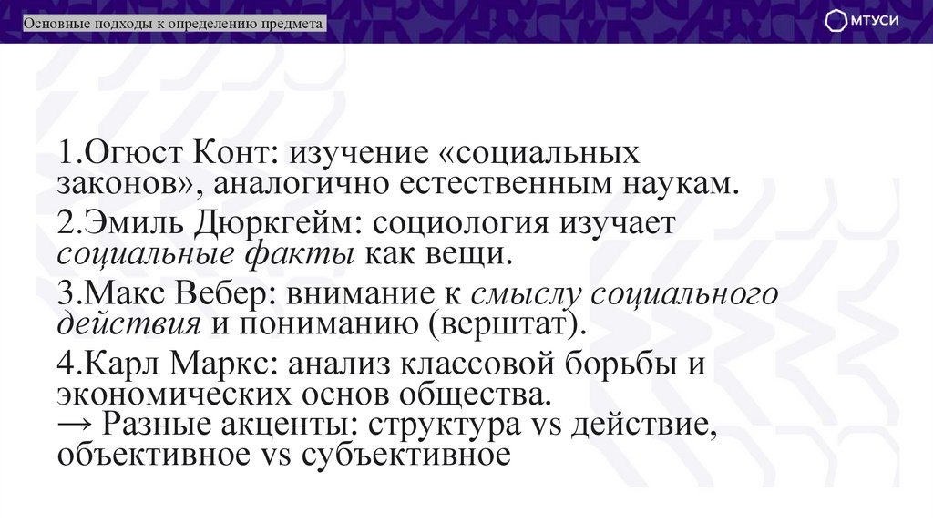 Понимание предмета социологии