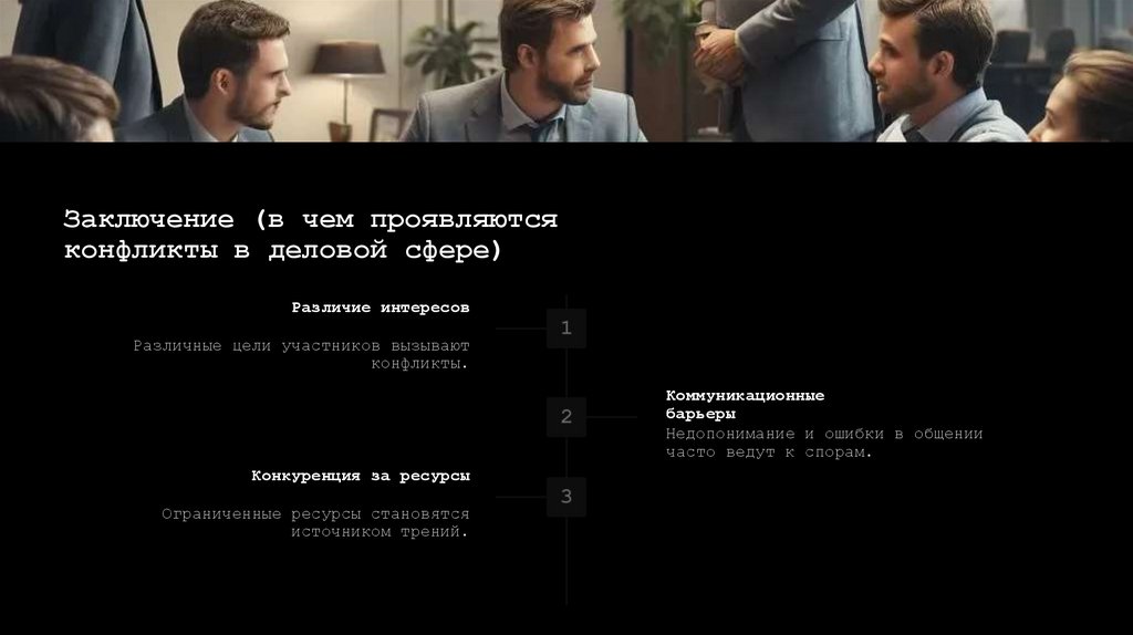 Заключение (в чем проявляютсяконфликты в деловой сфере)