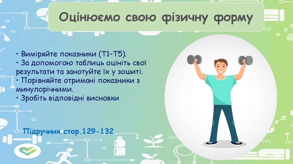 Оцінюємо свою фізичну форму• Виміряйте показники (Т1–Т5).