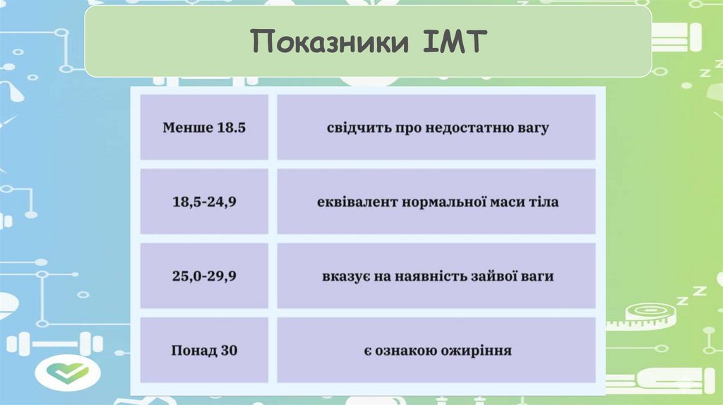Визначення індексу маси тіла (ІМТ)19.