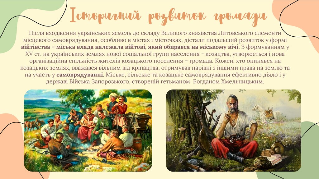 Історичний розвиток громадиПісля входження українських земель до складу Великого князівства Литовського елементи