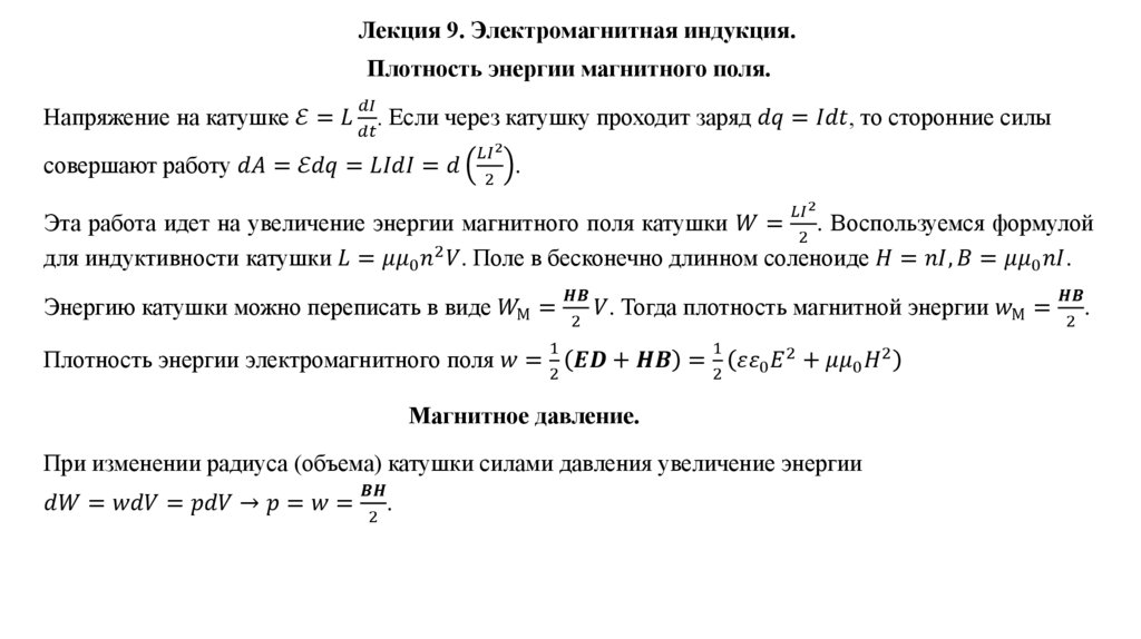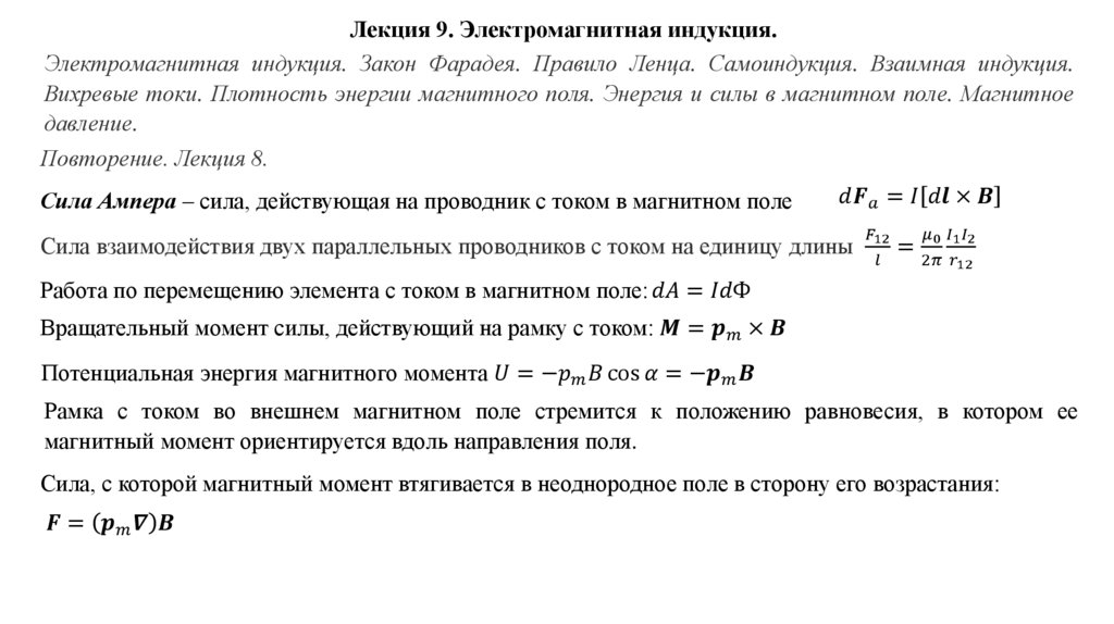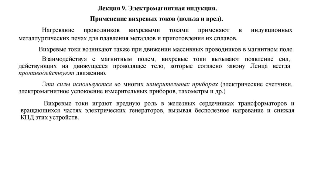 Вихревые токи. Плотность энергии магнитного поля. Энергия и силы в магнитном поле. Магнитное