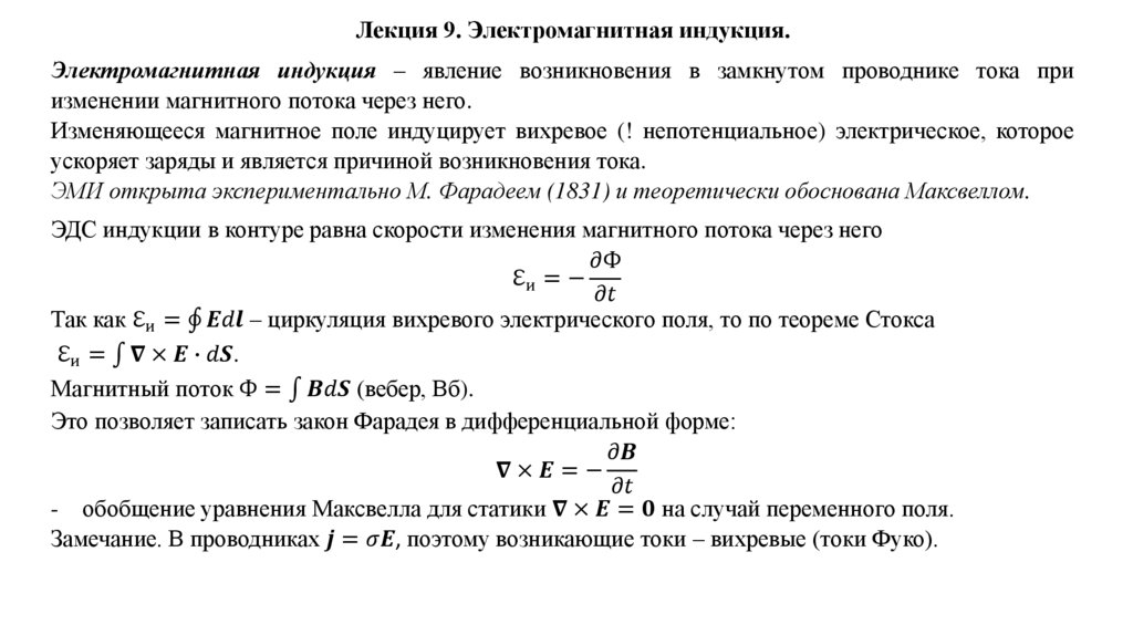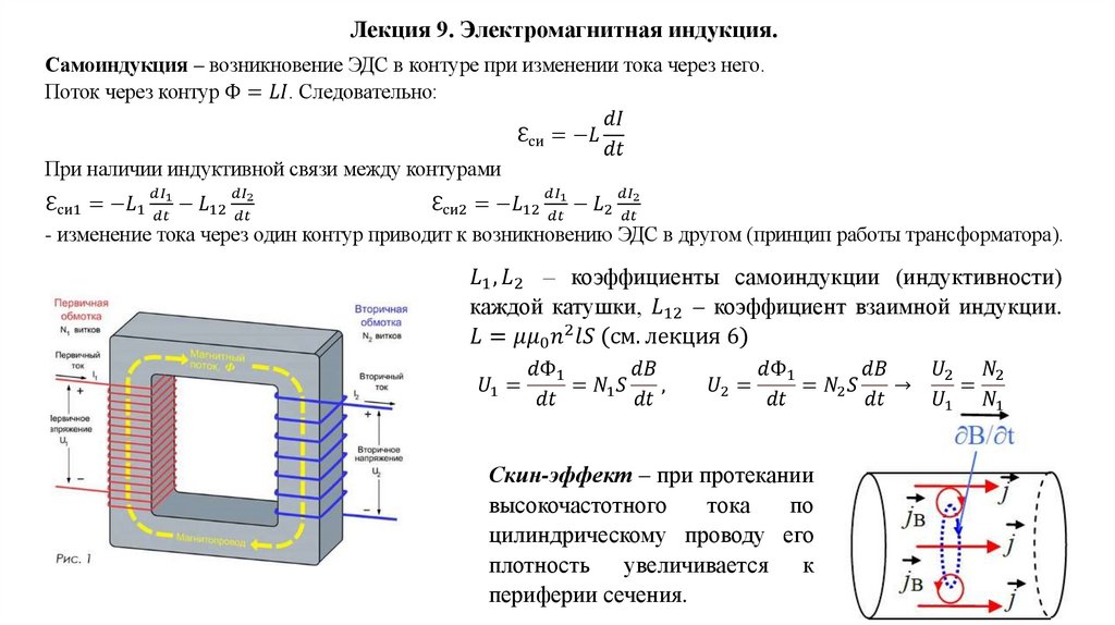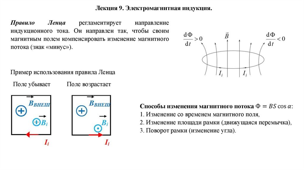 Лекция 9. Электромагнитная индукция.Электромагнитная индукция. Закон Фарадея. Правило Ленца. Самоиндукция. Взаимная индукция.