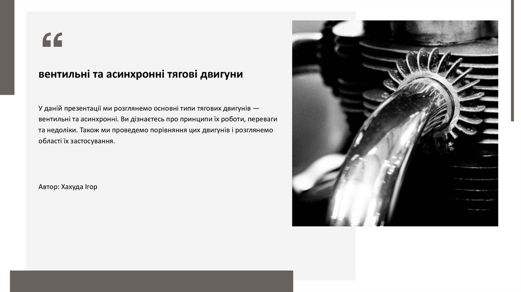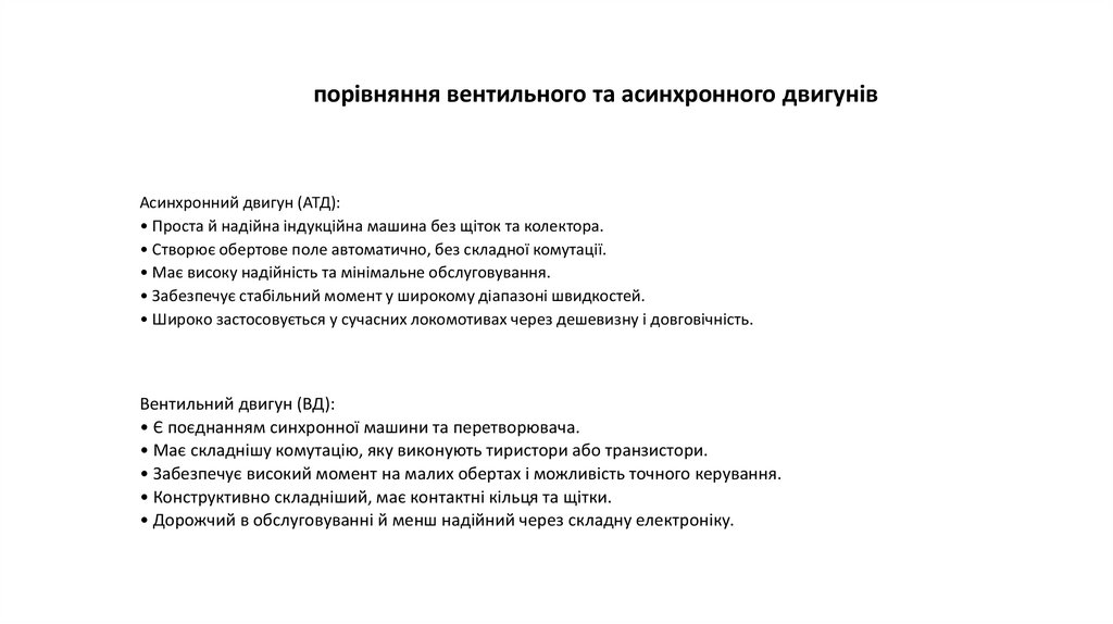 вентильні та асинхронні тягові двигуниУ даній презентації ми розглянемо основні типи тягових двигунів —