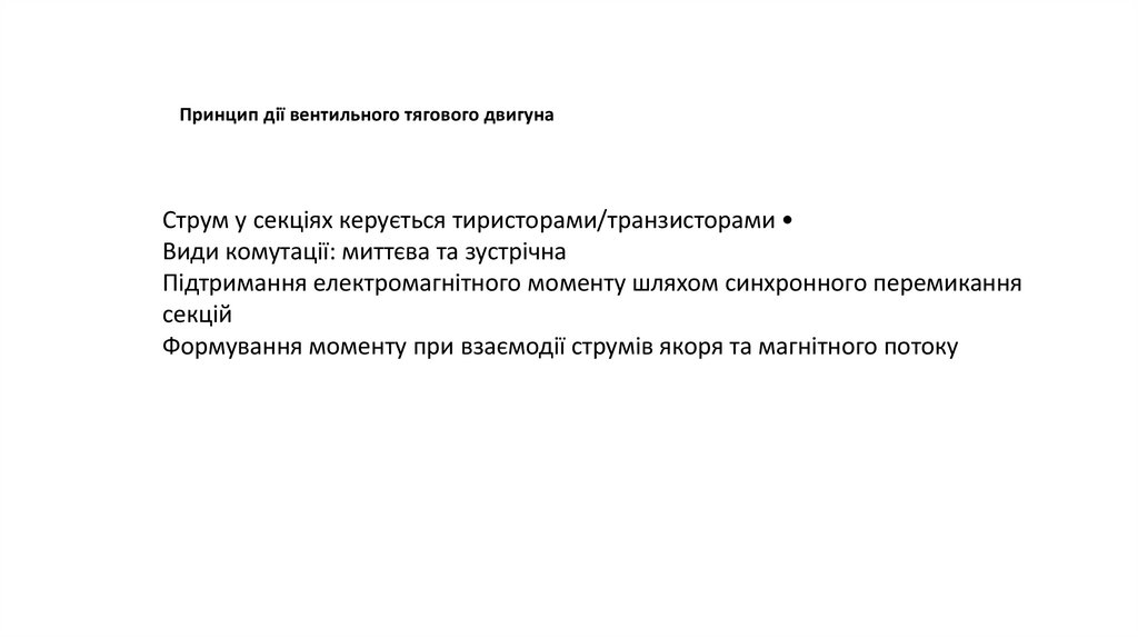 Принцип дії вентильного тягового двигунаСтрум у секціях керується тиристорами/транзисторами