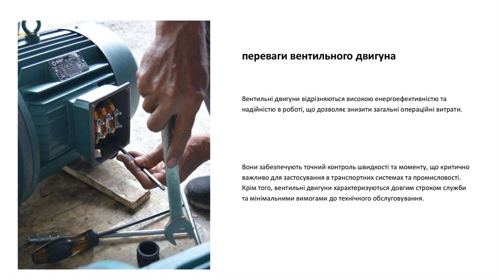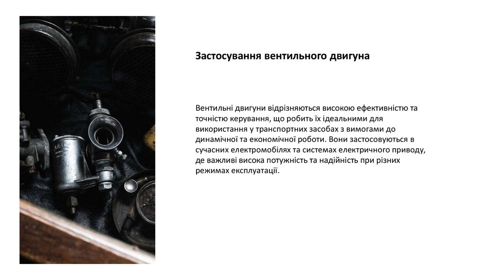 Застосування вентильного двигунаВентильні двигуни відрізняються високою ефективністю та