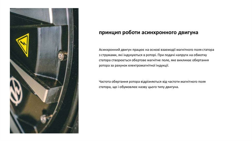 принцип роботи асинхронного двигунаАсинхронний двигун працює на основі взаємодії магнітного поля статора