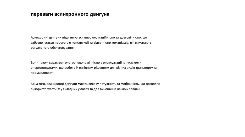 переваги асинхронного двигунаАсинхронні двигуни відрізняються високою надійністю та довговічністю, що