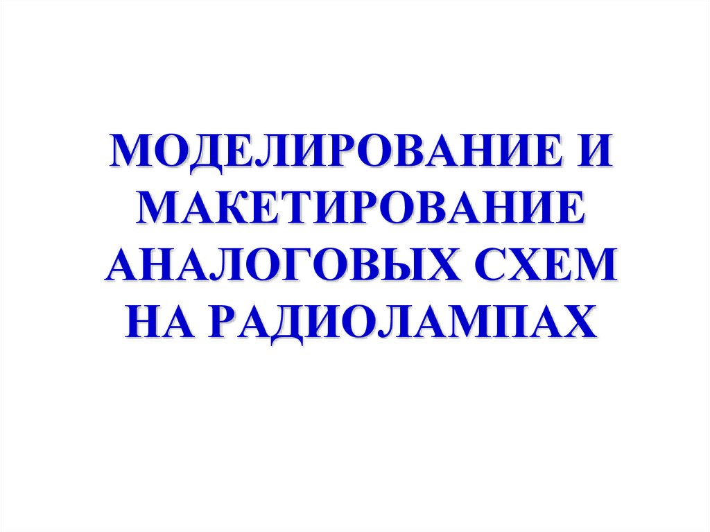 1. МОДЕЛИРОВАНИЕ И МАКЕТИРОВАНИЕ АНАЛОГОВЫХ СХЕМ НА РАДИОЛАМПАХ