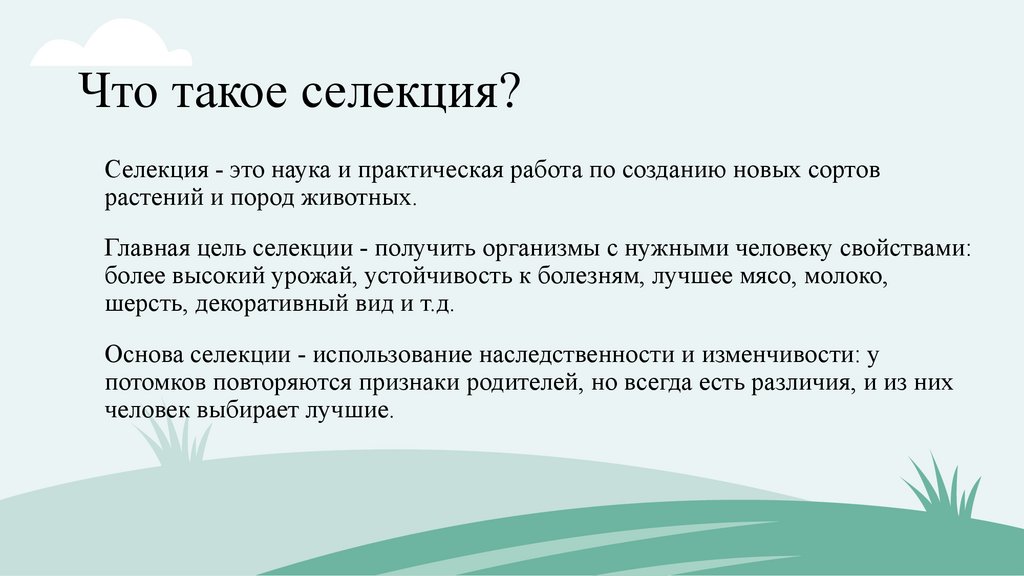 Что такое селекция?Селекция - это наука и практическая работа по созданию новых сортов